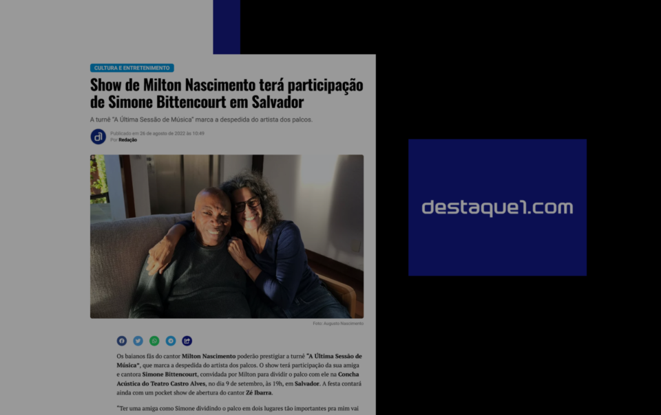 Os baianos fãs do cantor Milton Nascimento poderão prestigiar a turnê “A Última Sessão de Música”, que marca a despedida do artista dos palcos. O show terá participação da sua amiga e cantora Simone Bittencourt, convidada por Milton para dividir […]