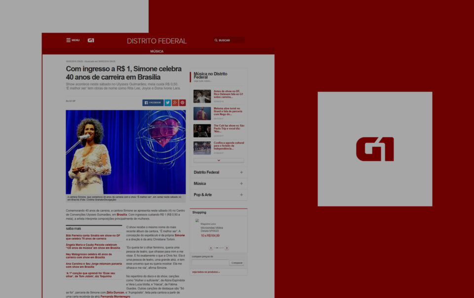 Show acontece neste sábado no Ulysses Guimarães; meia custa R$ 0,50. ‘É melhor ser’ tem obras de nome como Rita Lee, Joyce e Dona Ivone Lara. Comemorando 40 anos de carreira, a cantora Simone se apresenta neste sábado (4) no […]